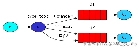 Topic模式可以实现Pub/Sub发布与订阅模式和Routing路由模式的功能,只是Topic在配置routing key时可以使用通配符,使得路由的匹配更加灵活,*