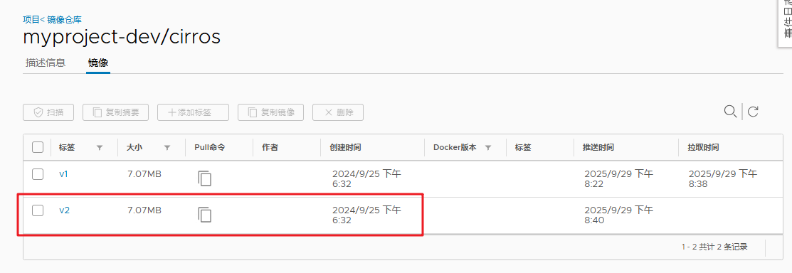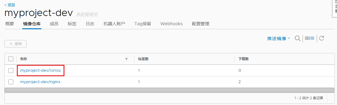 docker push 192.168.10.14/myproject-dev/cirros:v2