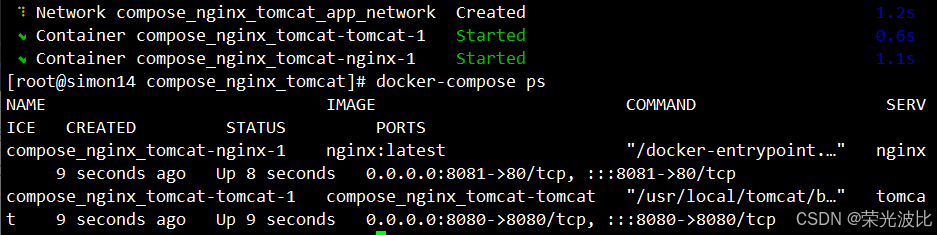 、环境变量文件等)的集合,默认以当前目录名作为工程名。 - 服务(Service):工程中定义的单个应用组件(如Nginx、Tomcat),包含容器的镜像、启动参数、依赖关系等配置,一个服务可对应多个容器实例。