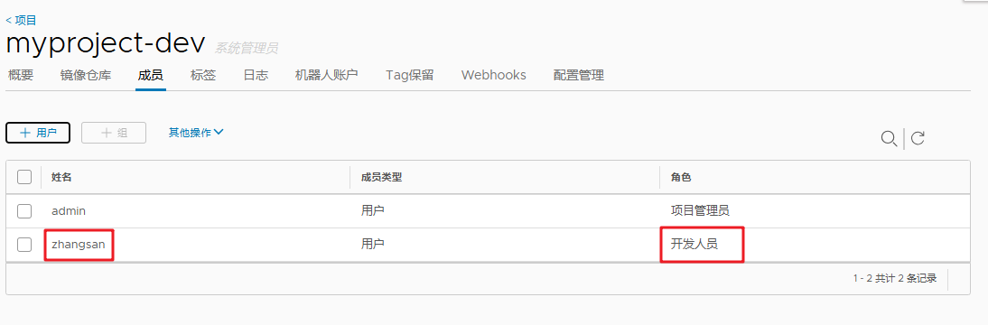 ,分配角色为"开发人员"(可上传/下载镜像); - 点击"确定",完成权限分配。