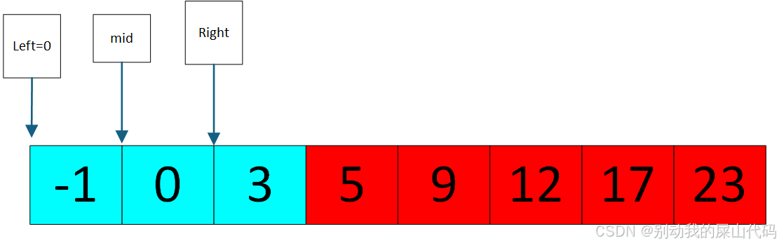 所以下一次二分的末尾也就是下一次二分left的位置应该指向蓝色区域的最后一个元素