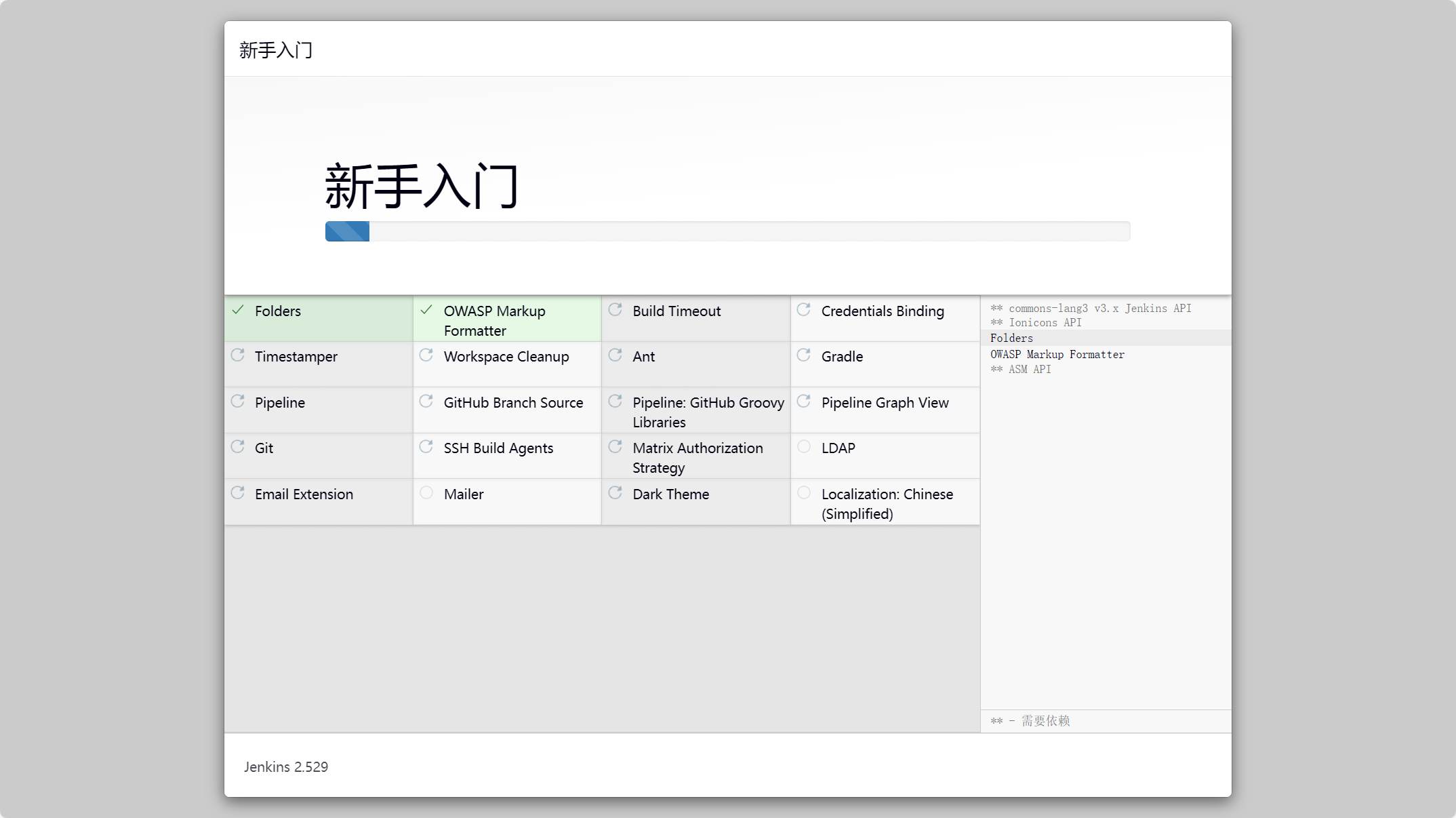 然后再刷新页面按照之前的步骤获取密码登录后安装推荐的插件即会出现如下安装页面: