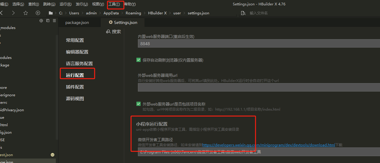 选择微信开发者工具 就会自动打开微信开发者工具了(前提是配置了微信开发者工具的安装位置)
