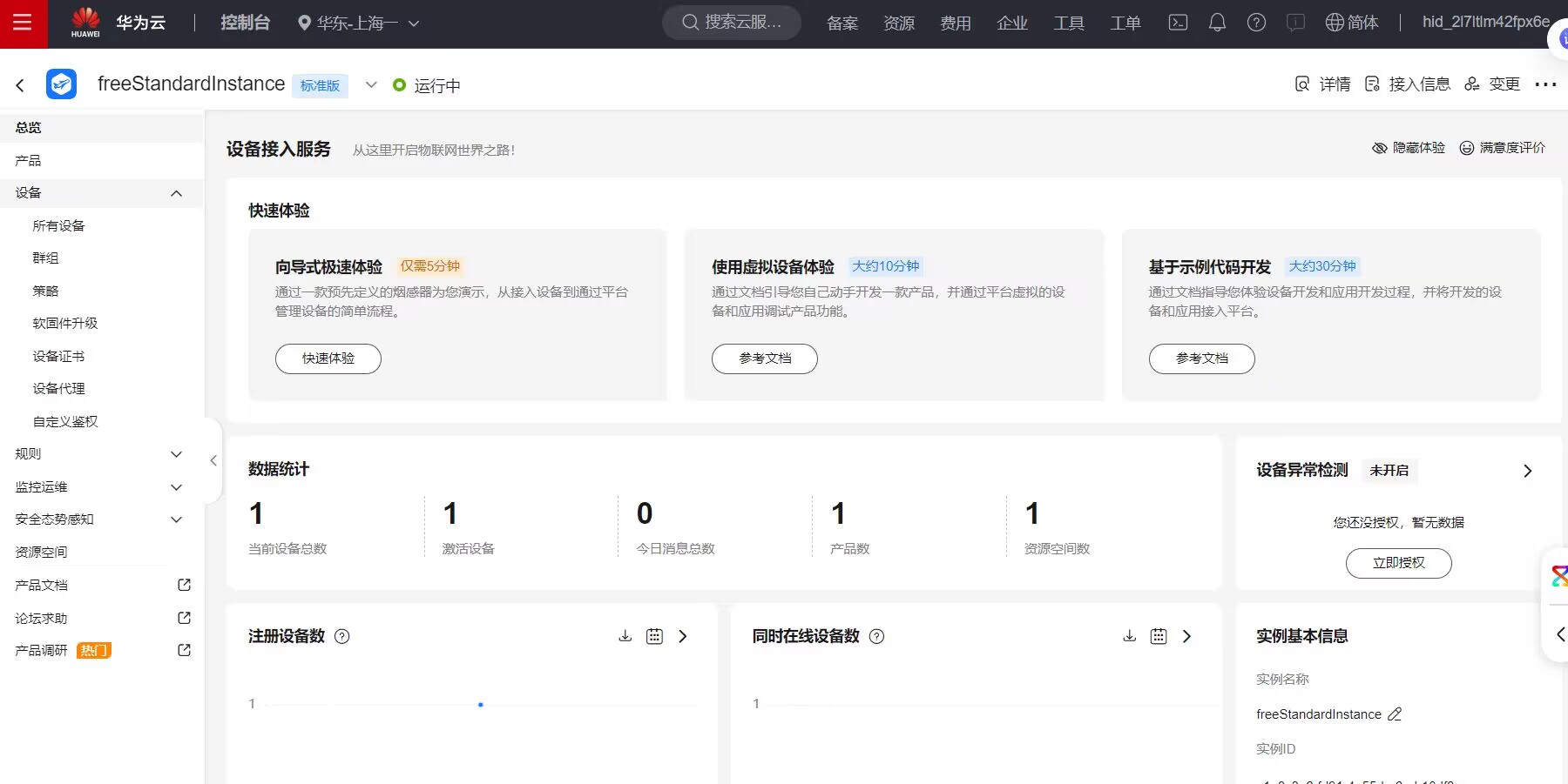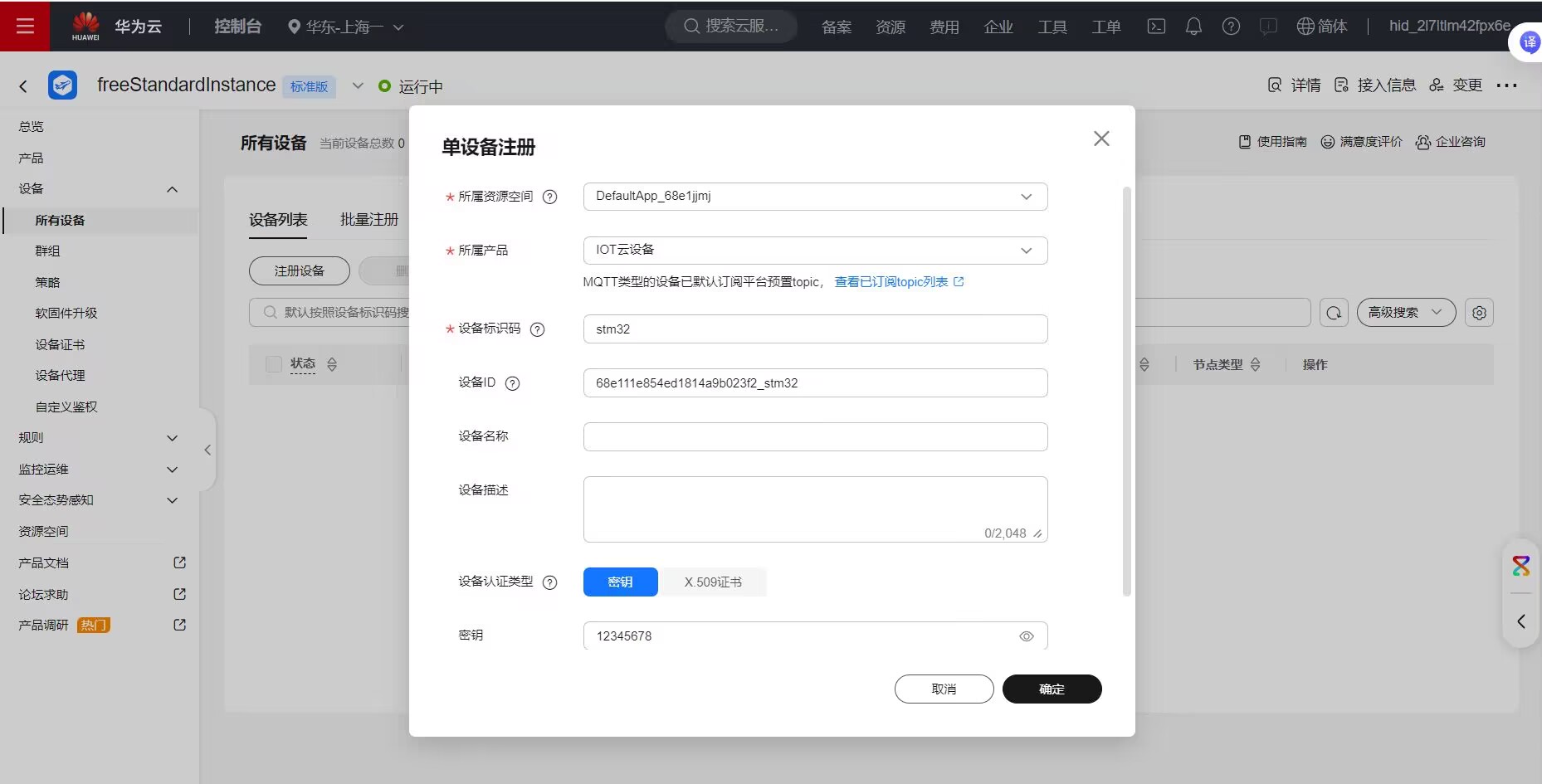 接入地址:b89ae024d0.st1.iotda-device.cn-east-3.myhuaweicloud.com
