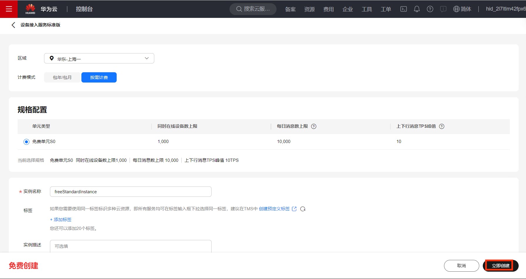 现在可以免费创建的,按需付费。 只要是不超过规格,就可以免费使用,对于个人项目Demo来说,完全够用的