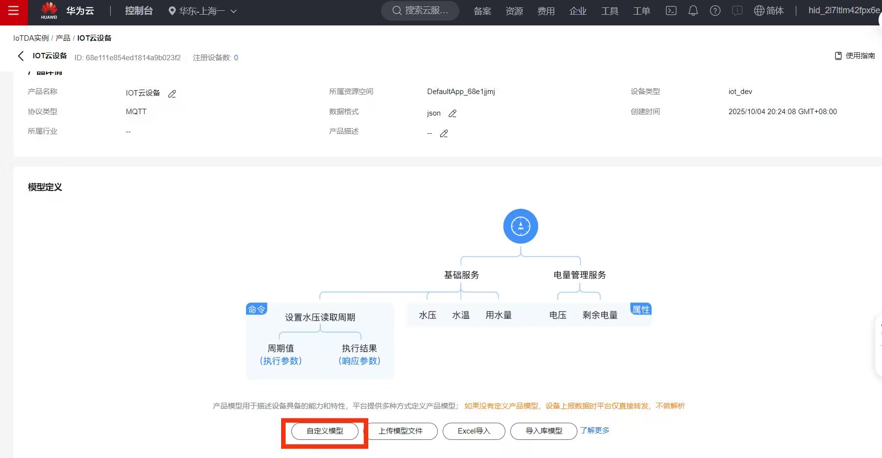 产品创建完成之后,点击进入产品详情页面,翻到最下面可以看到模型定义。