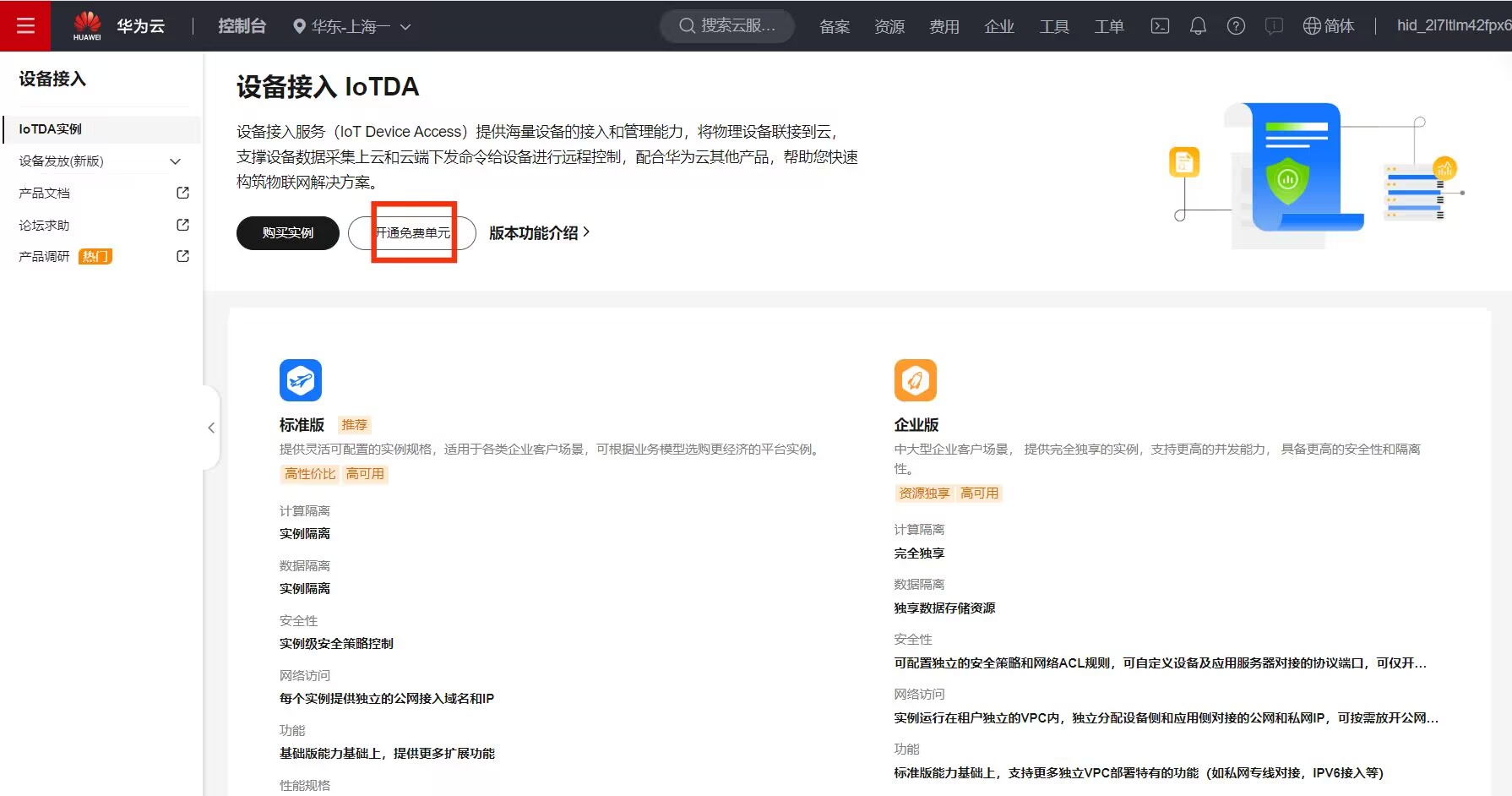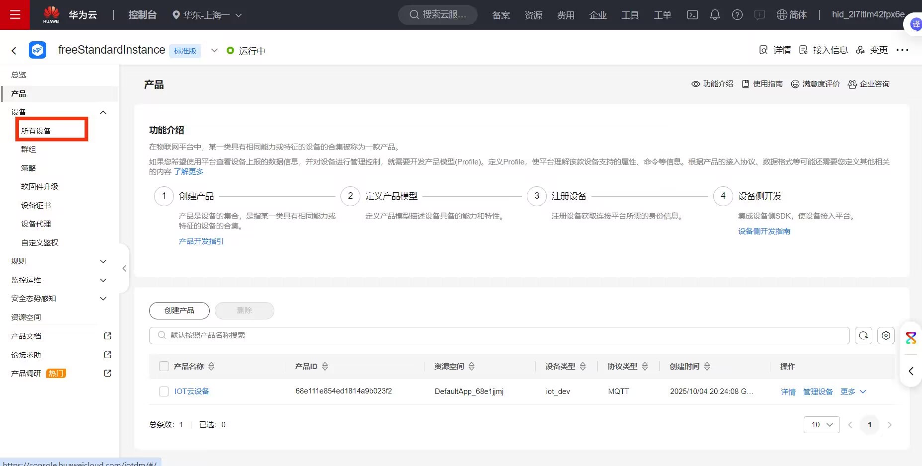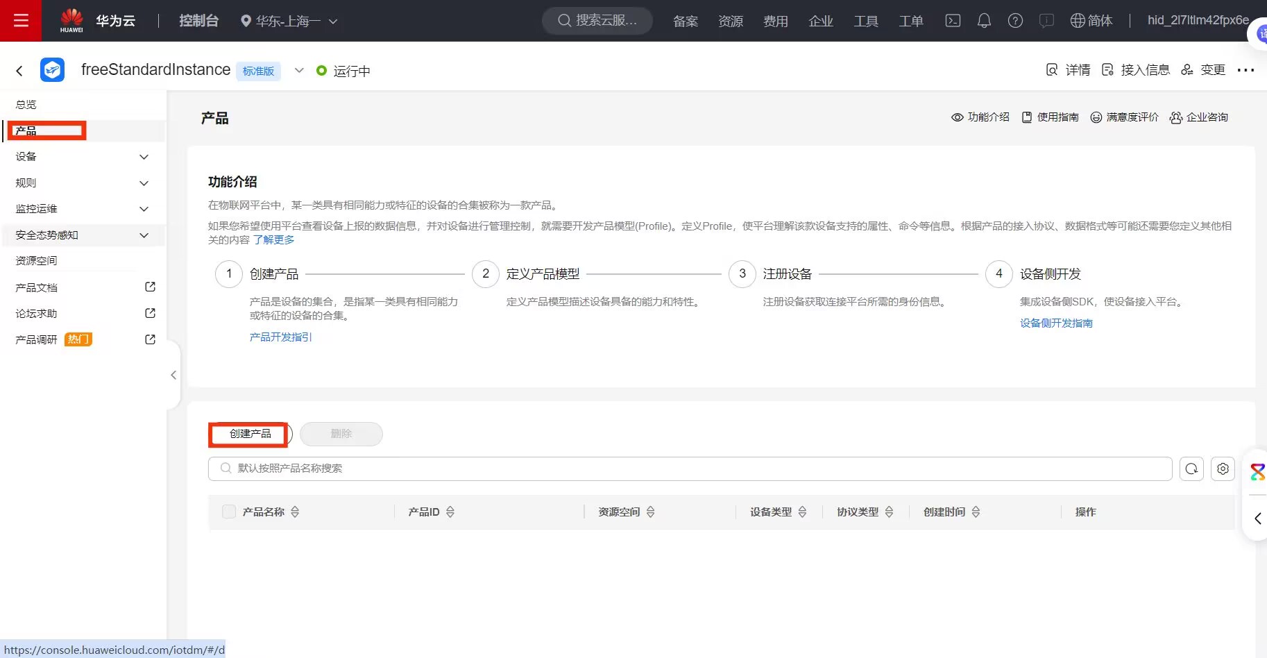 接下来介绍,华为云平台的MQTT三元组参数如何得到。