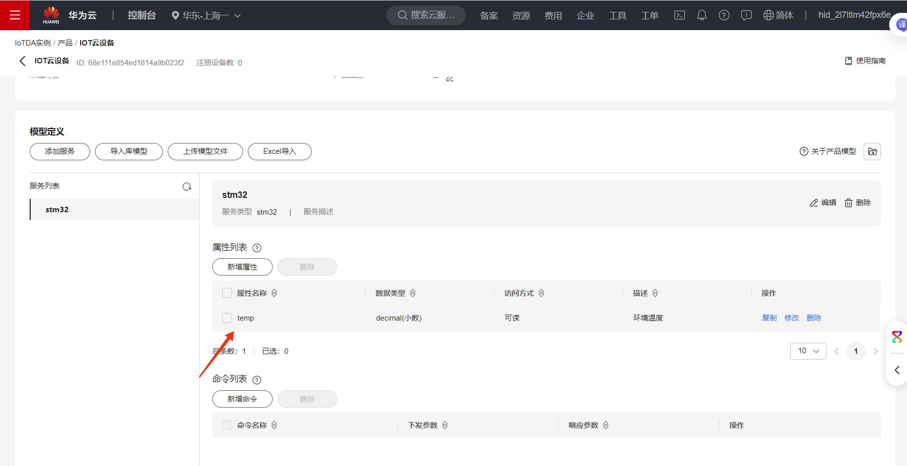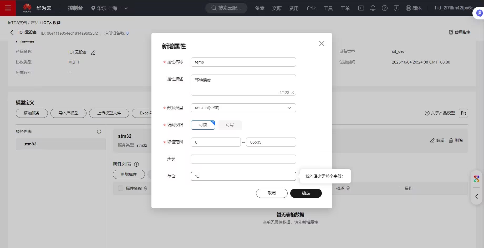 这里就创建一个温度的属性。我们这个设备用来测温的。
