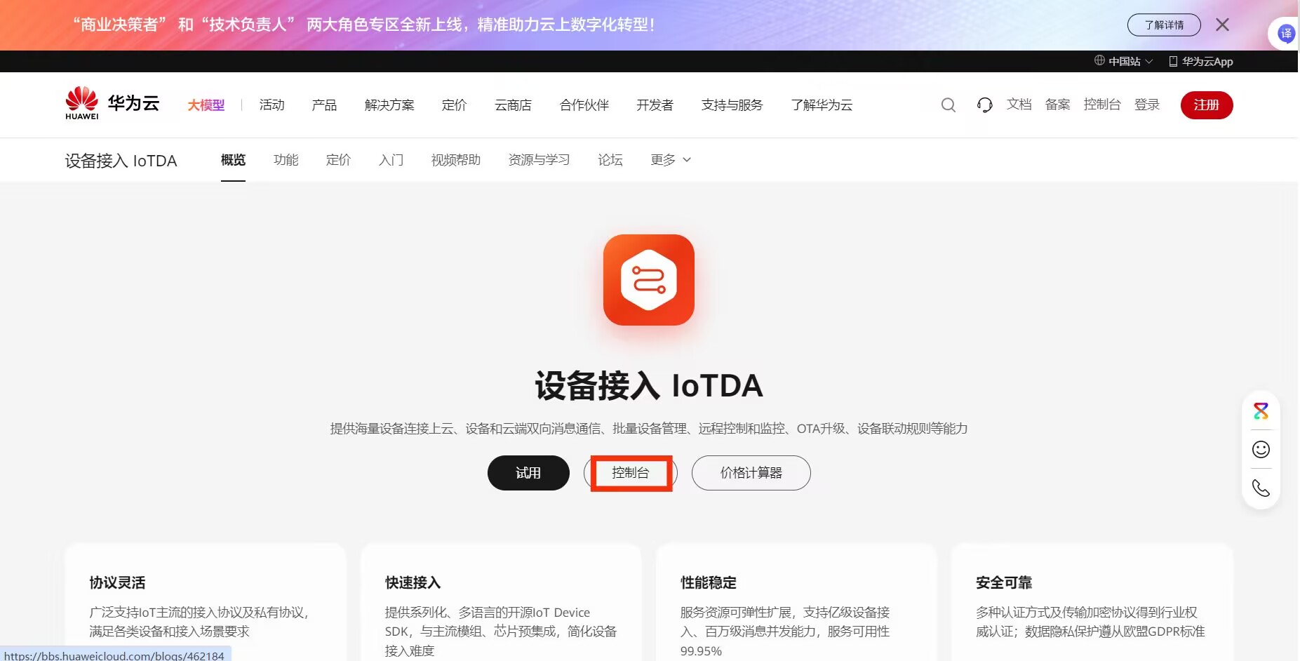 帮助文档地址:https://console.huaweicloud.com/iotdm/?region=cn-north-4#/dm-portal/home