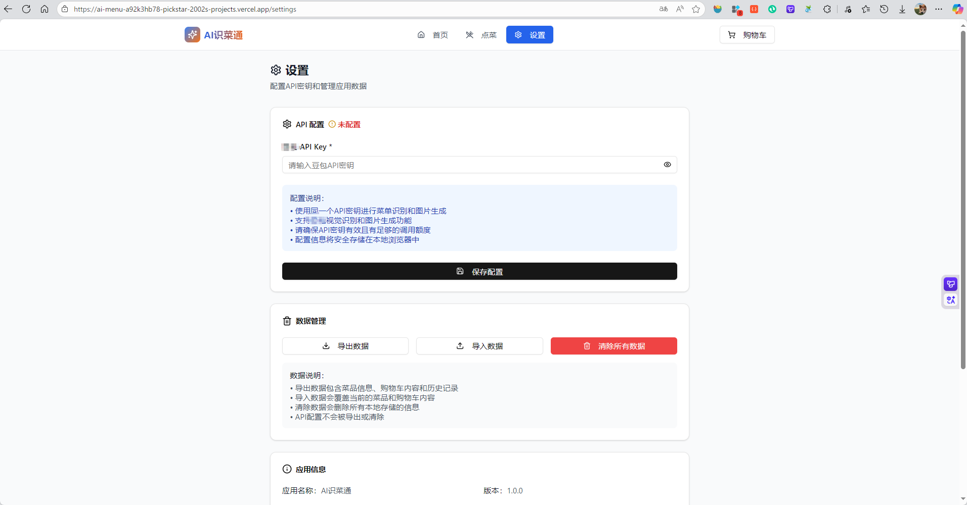 在项目"AI识菜通"的最终部署阶段,我选择了 Vercel 作为前端应用的托管平台。Vercel 以其卓越的开发者体验和对现代前端框架的深度支持,极大简化了部署流程。本项目基于 React 构建,并使用了 shadcn/ui 和 Radix UI 组件库,Vercel 能自动识别项目结构,实现一键部署和持续集成。每次代码推送至 GitHub 仓库,Vercel 都会自动构建并生成预览链接,方便快速测试与迭代。更重要的是,Vercel 提供全球边缘网络分发,确保用户无论身处何地,都能快速加载应用页面。整个"AI识菜通"从前端交互、图片上传,到调用腾讯混元大模型进行多语言菜单识别与菜品图像生成,最终生成点餐字符串,全部通过 Vercel 高效、稳定地交付给用户。借助 Vercel 的免费计划和无缝 DevOps 能力,我得以将精力聚焦在核心 AI 功能开发上,而无需担心服务器运维,真正实现了"开发即部署"的现代 Web 开发体验。[https://ai-menu-a92k3hb78-pickstar-2002s-projects.vercel.app/](https://ai-menu-a92k3hb78-pickstar-2002s-projects.vercel.app/)