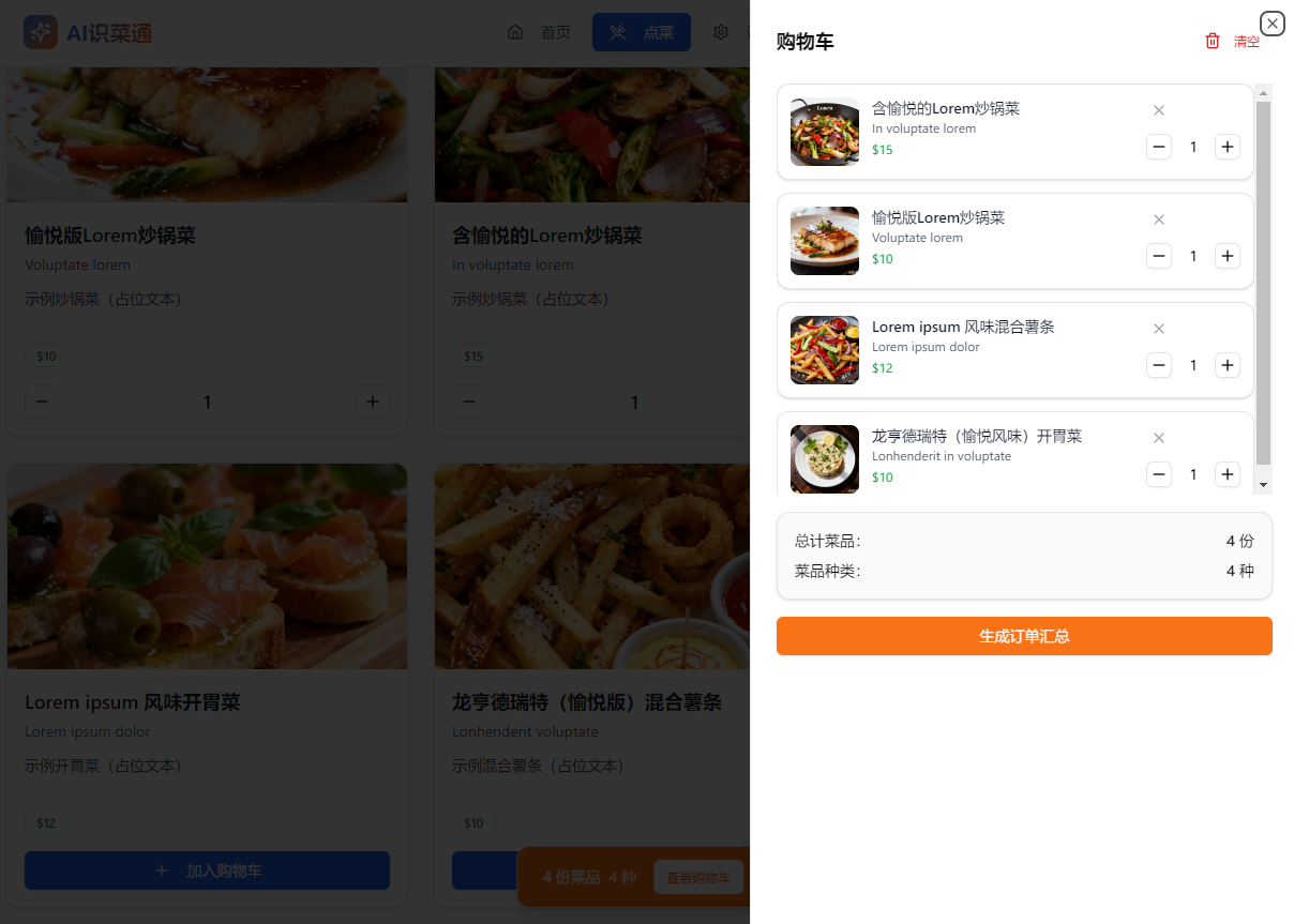 "AI识菜通"是一个基于AI的智能点菜应用,用户可以上传任何语言的菜单图片,系统会自动识别并翻译成中文,生成带有图片和介绍的点菜界面,最终生成订单字符串方便用户与服务员沟通。