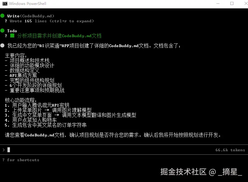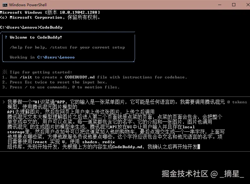 输入到CodeBuddy中,并且先别让他直接开始开发,先让他生成CodeBuddy.md。