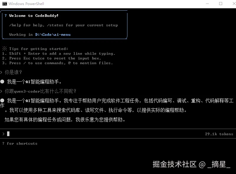 下载完毕之后直接输入CodeBuddy即可唤醒