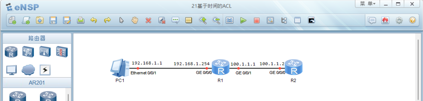 \[R1-GigabitEthernet0/0/1\]ip address 100.1.1.1 24 #配置ip地址和子网掩码