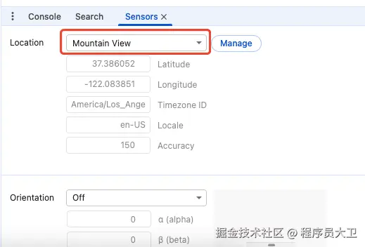 一栏中,选择 "Mountain View"(美国山景城),即北美西海岸时区:
