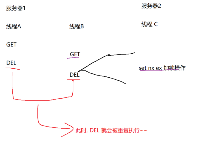 比如在同一个服务器中,线程a先判定自己可以解锁,然后线程b也判定自己能解锁(前面的校验是针对不同的服务器的,在同一个服务器中,如果锁的粒度过大,可能就出现被别的线程解锁的情况),之后线程a解锁,然后如果此时,服务器2号的c,要使用锁,进行加锁,然后线程b把c的锁解了,这就出问题了。