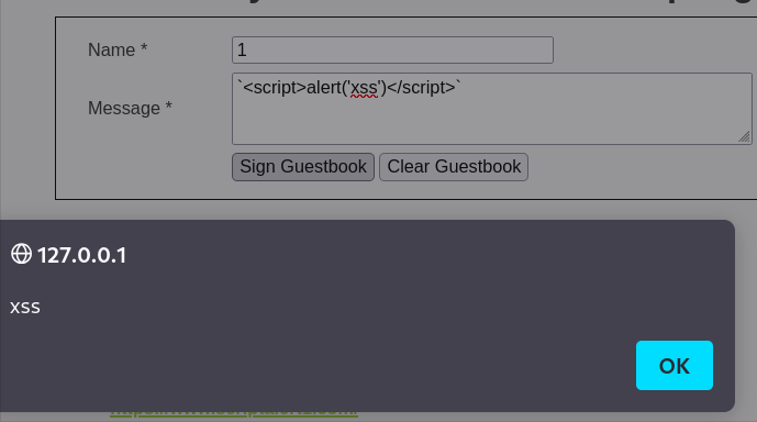 函数进行编码,因此无法通过message参数注入XSS代码,但是对于name参数,只是简单过滤了<script>