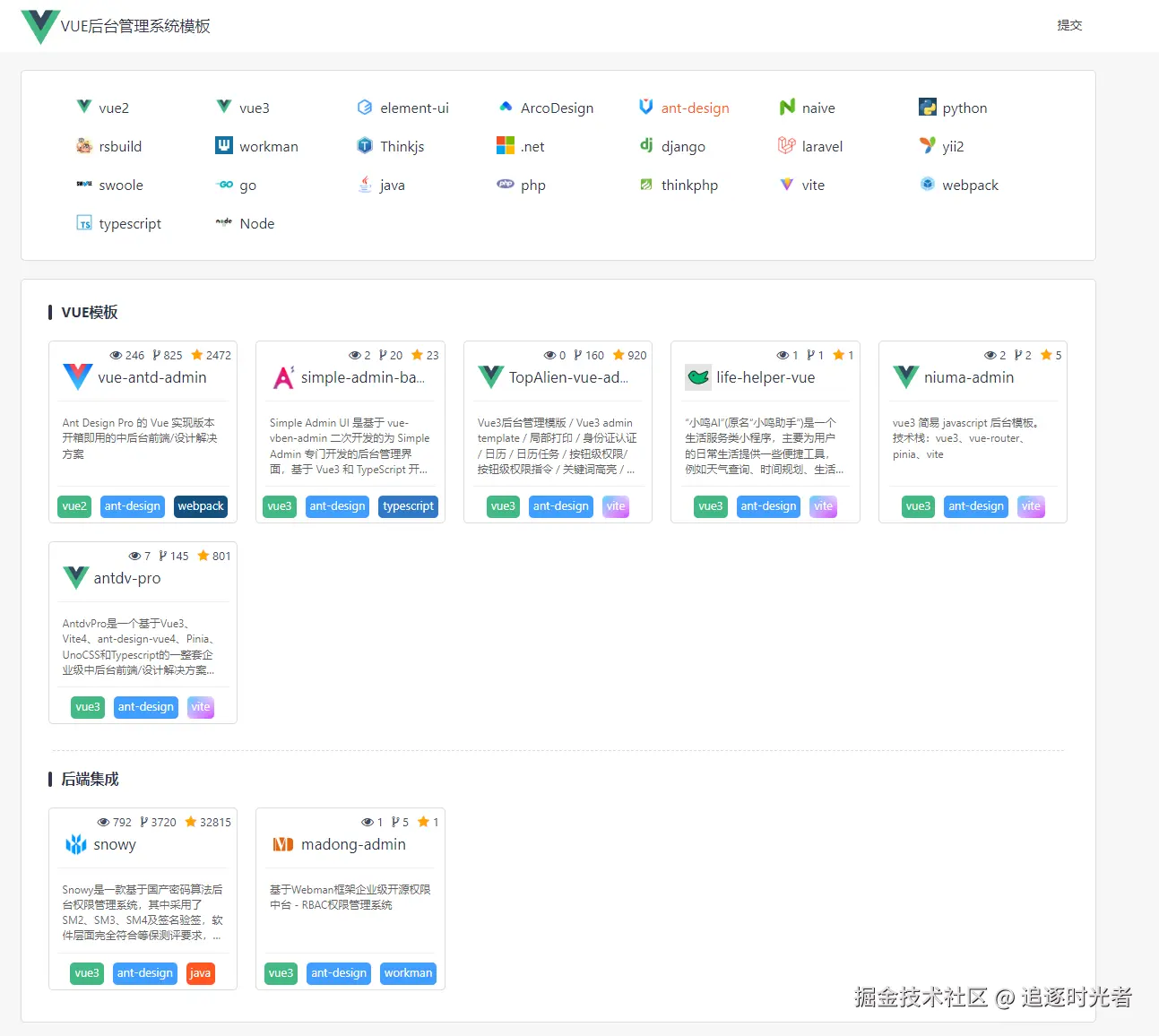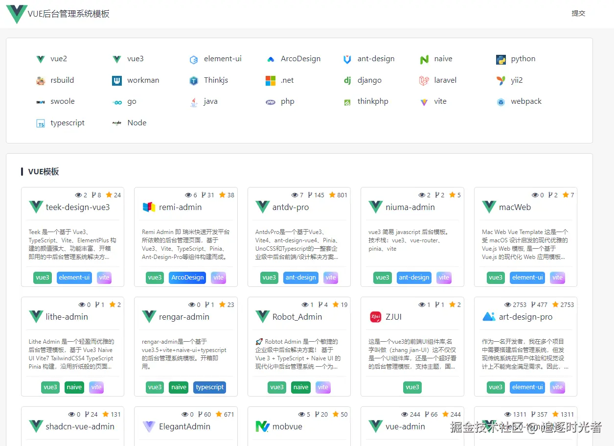 在开发 Vue 后台管理系统时,一个美观、功能完善且易于扩展的模板能极大提升我们的开发效率。面对琳琅满目的 Vue 开源项目,如何快速找到真正实用、维护良好的模板成为关键。大姚给大家分享一个 Vue 后台管理系统模板大全,里面收录了大量开源的 Vue 后台管理系统模板和 Vue 后台管理系统。