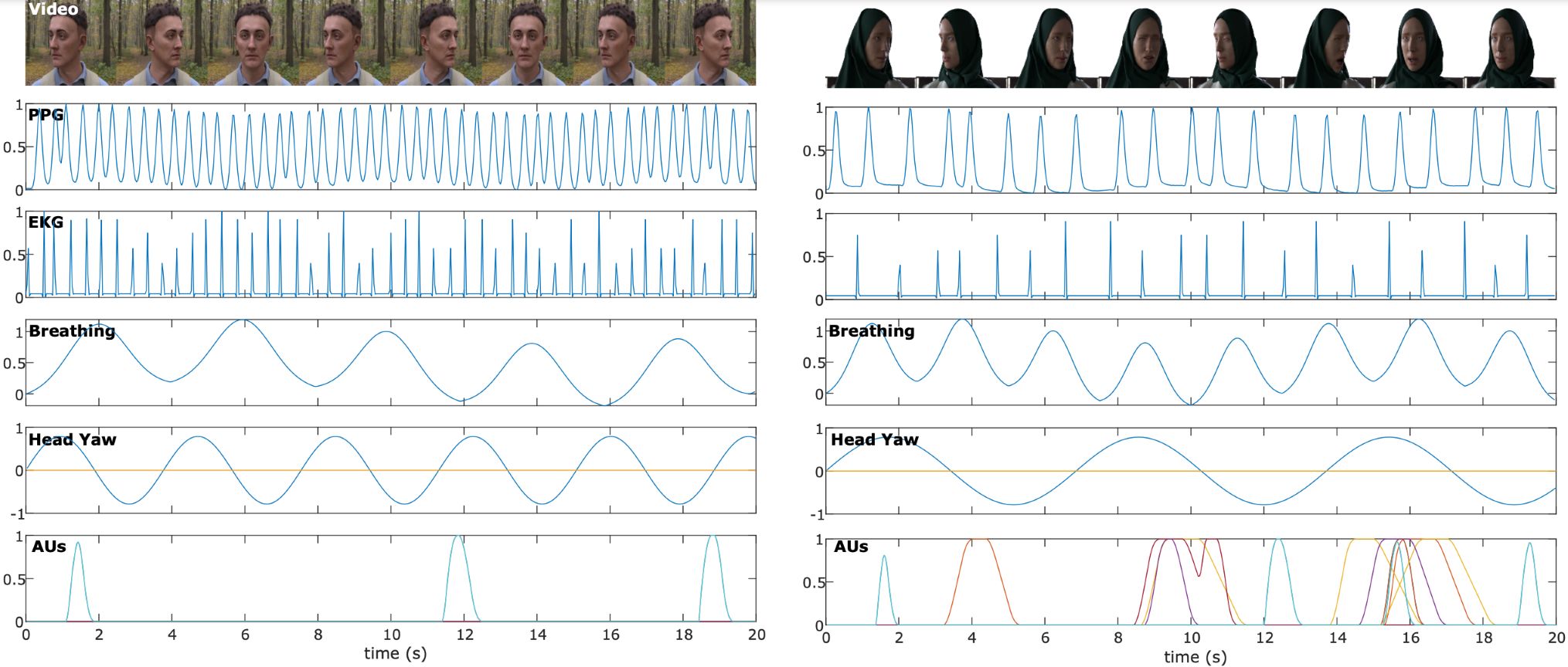 合成数据(synthetic data)提供一种可控、带"完美标签"的替代方式,便于训练和评估模型,同时能覆盖更大的变异空间(光照、表情、运动、肤色等)。SCAMPS 就是在这种背景下被设计出来的合成视频 + 生理信号数据集。