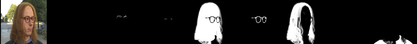 分割掩膜 | 每帧还带有像素级的分割蒙版(例如:头发、眉毛、睫毛、皮肤、衣服、眼镜等类别) |