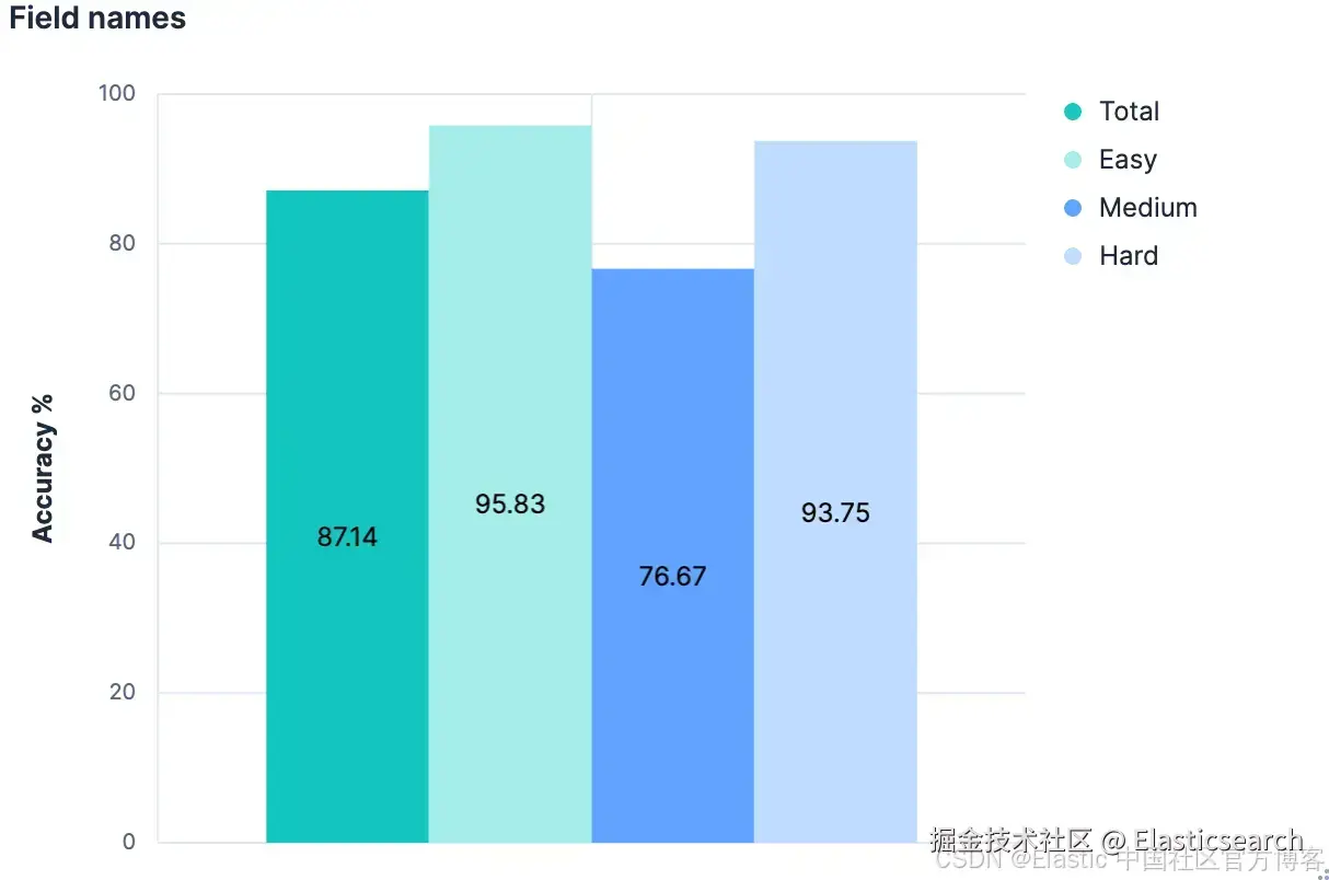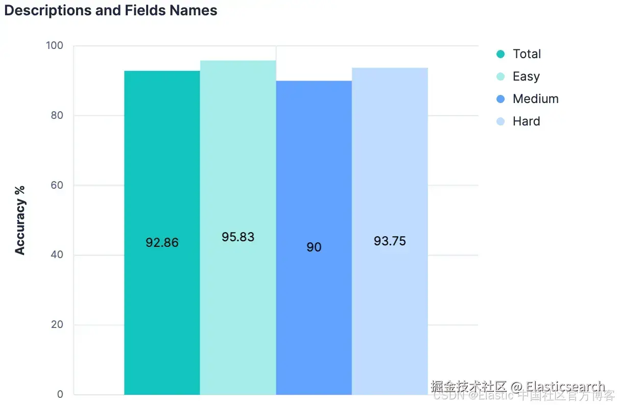 下一个明显的结果是,仅仅增加更多描述字符的效果会递减。在这项研究之前,我们曾讨论是否应该投资扩展 Elasticsearch 存储字段级元数据的能力。目前,这些 meta 值限制为 50 个字符,并假设需要增加这个值才能从字段中推导语义理解。但事实显然不是这样,LLM 仅凭字段名称就表现良好。我们可能以后会进一步研究,但目前这已不紧迫。