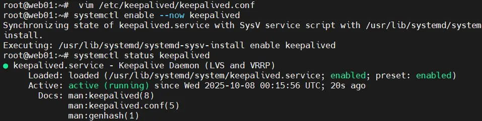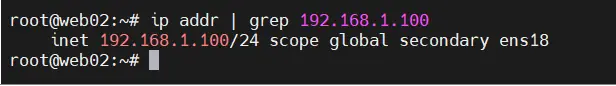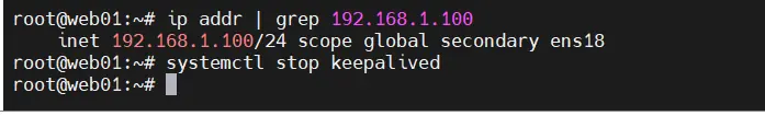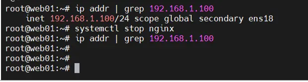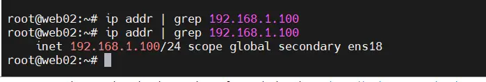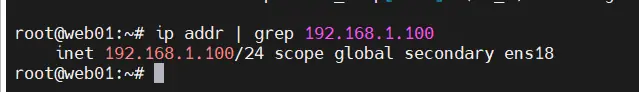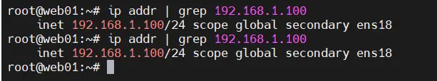 此时 VIP(192.168.1.100)会绑定在 web01 上。