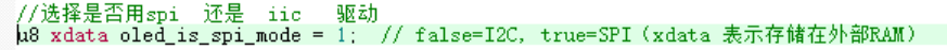 u8 xdata oled_is_spi_mode = 1; // false=I2C, true=SPI(xdata 表示存储在外部RAM)