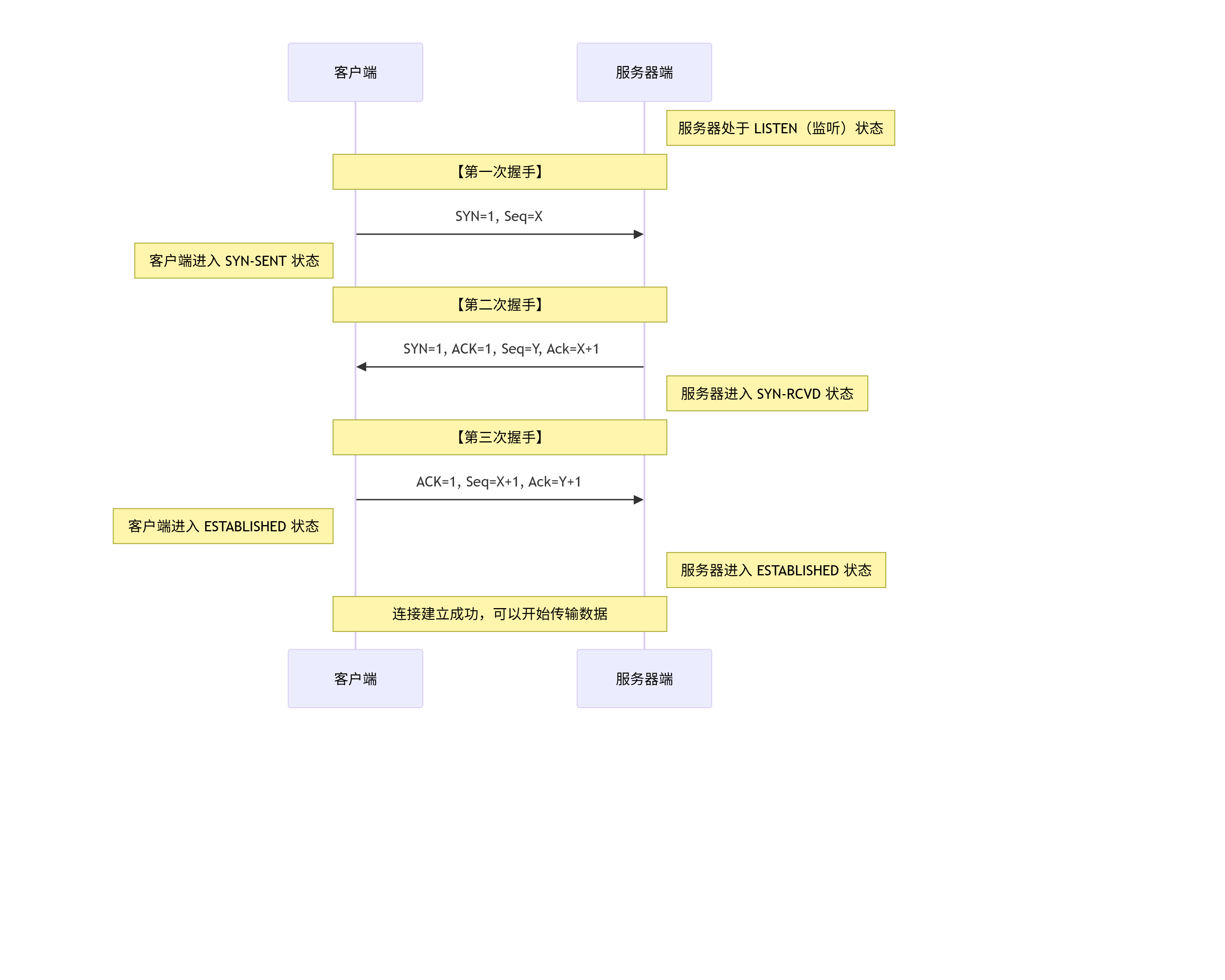 目标 : 在客户端和服务器之间建立一个全双工的、可靠的 TCP 连接。所谓"全双工",意味着双方都可以同时向对方发送和接收数据。