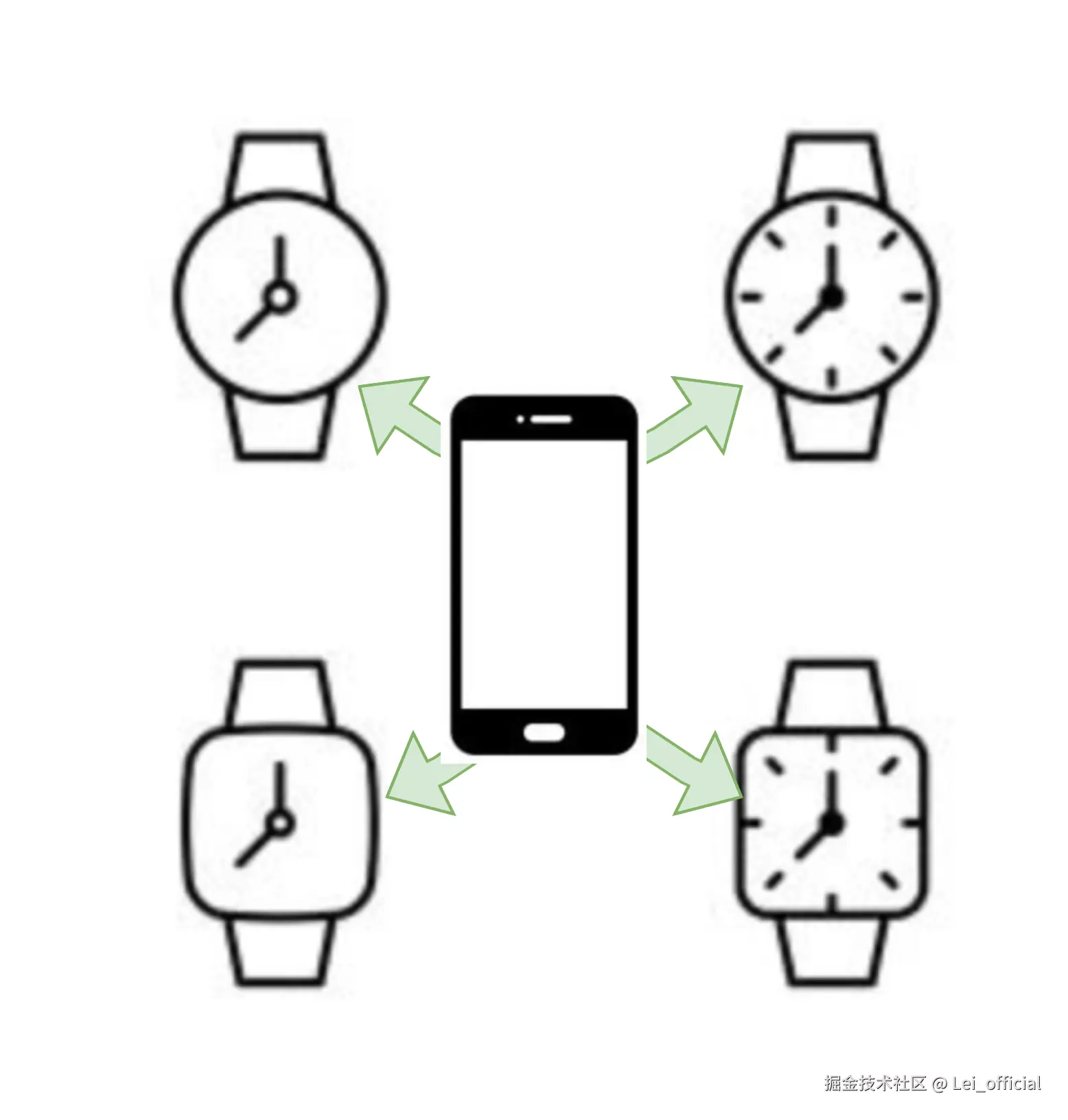 - 手表存在更新换代(例如一代表、二代表、三代表),不同代手表之间特性有差异:形态(圆/方)、分辨率、功能集、数据协议等。
