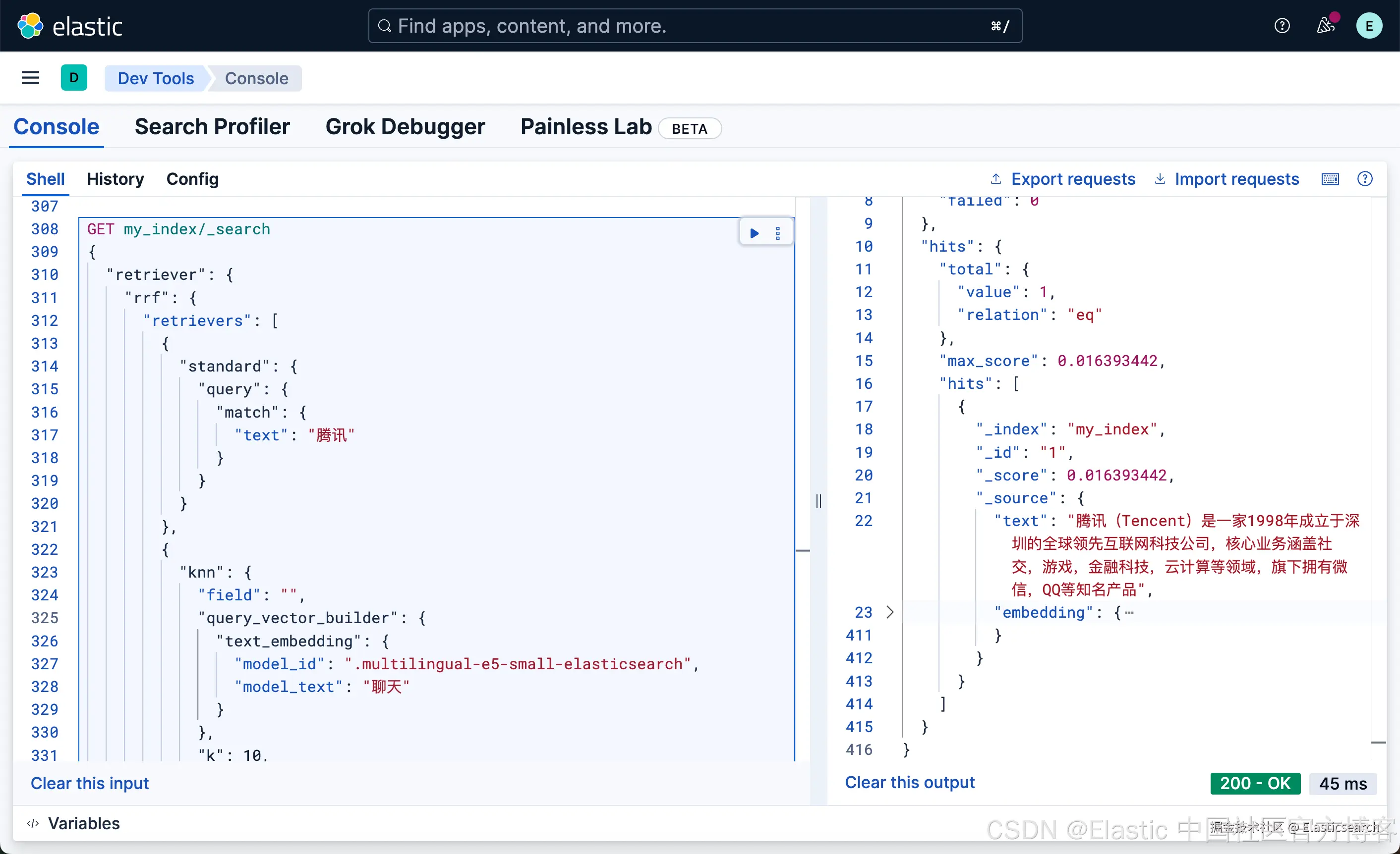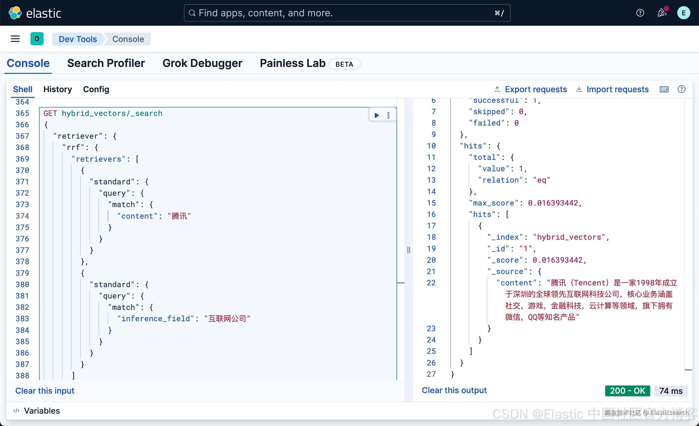 我们知道,单纯的语义搜索有时并不能完全提高我们的召回率及相关性,甚至有时搜索的结果不具有可解释性。我们可以使用混合搜索的方法来提高相关性及召回率。