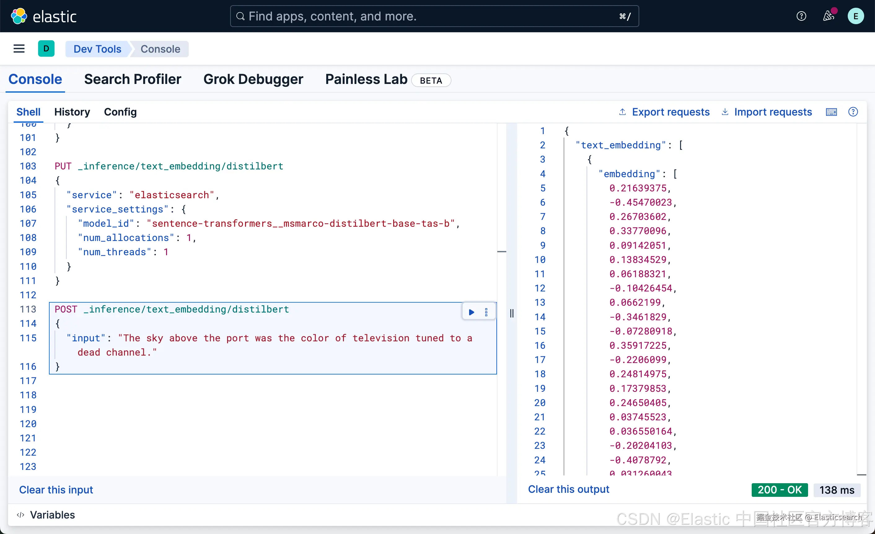 在今天的文章中,我来详细描述如上在 Elasticsearch 中使用推理端点,并展示进行语义搜索的。更多阅读,请参阅 "Elasticsearch:Semantic text 字段类型"。在本次展示中,我讲使用 Elastic Stack 9.1.4 版本来进行展示。