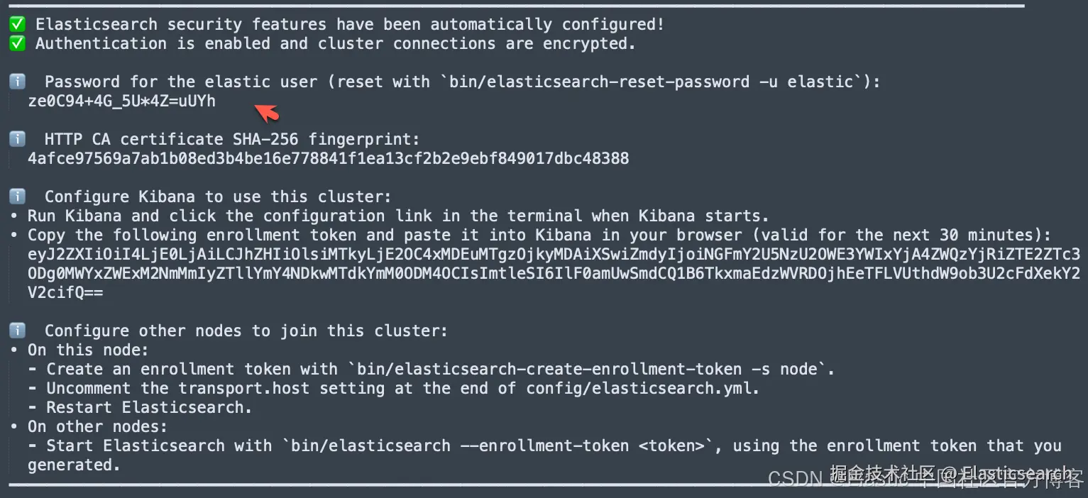 首次安装 Elasticsearch 的时候,我们可以看到如下的画面: