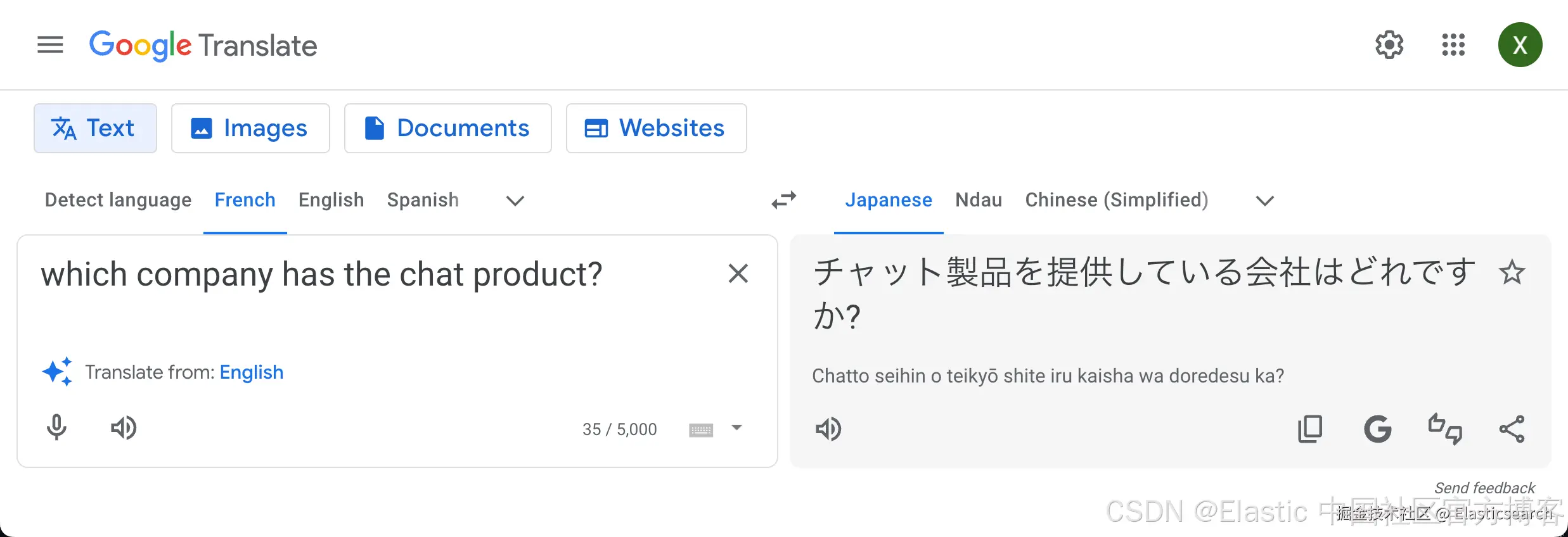 很显然,我们的文档中并没有含有聊天这样的词汇,但是我们使用英文搜索 chat 这样的词,它也能帮我们找到腾讯微第一。我们甚至可以使用日文来进行搜索:
