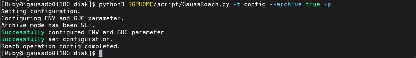 python3 $GPHOME/script/GaussRoach.py -t config --archive=true -p