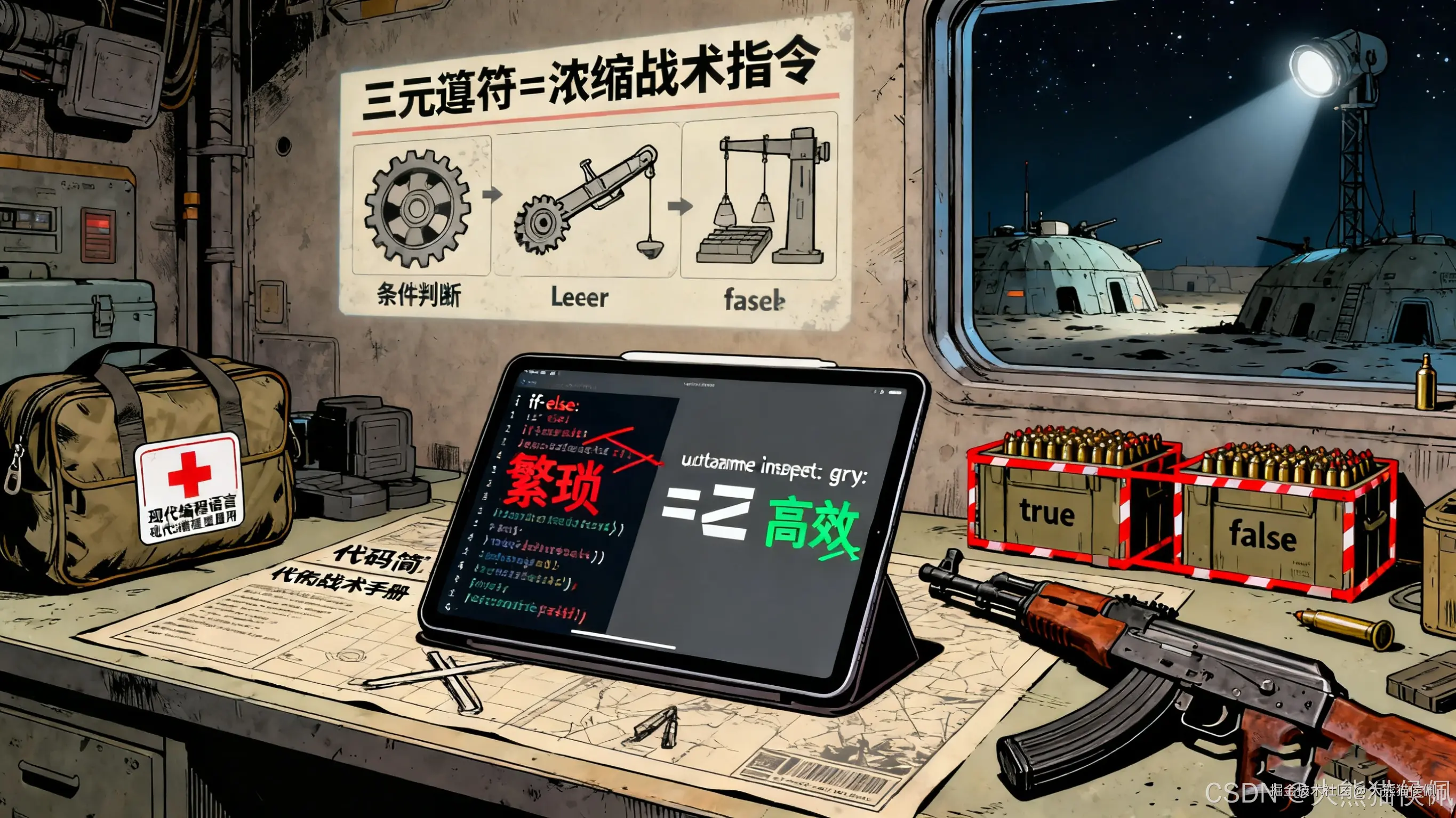 就像反抗军不管用 AK 还是脉冲步枪,都得会用急救包一样 ------ 写代码时,"让代码简洁不啰嗦" 是永恒的目标,而三元运算符就是实现这个目标的 "快刀"。