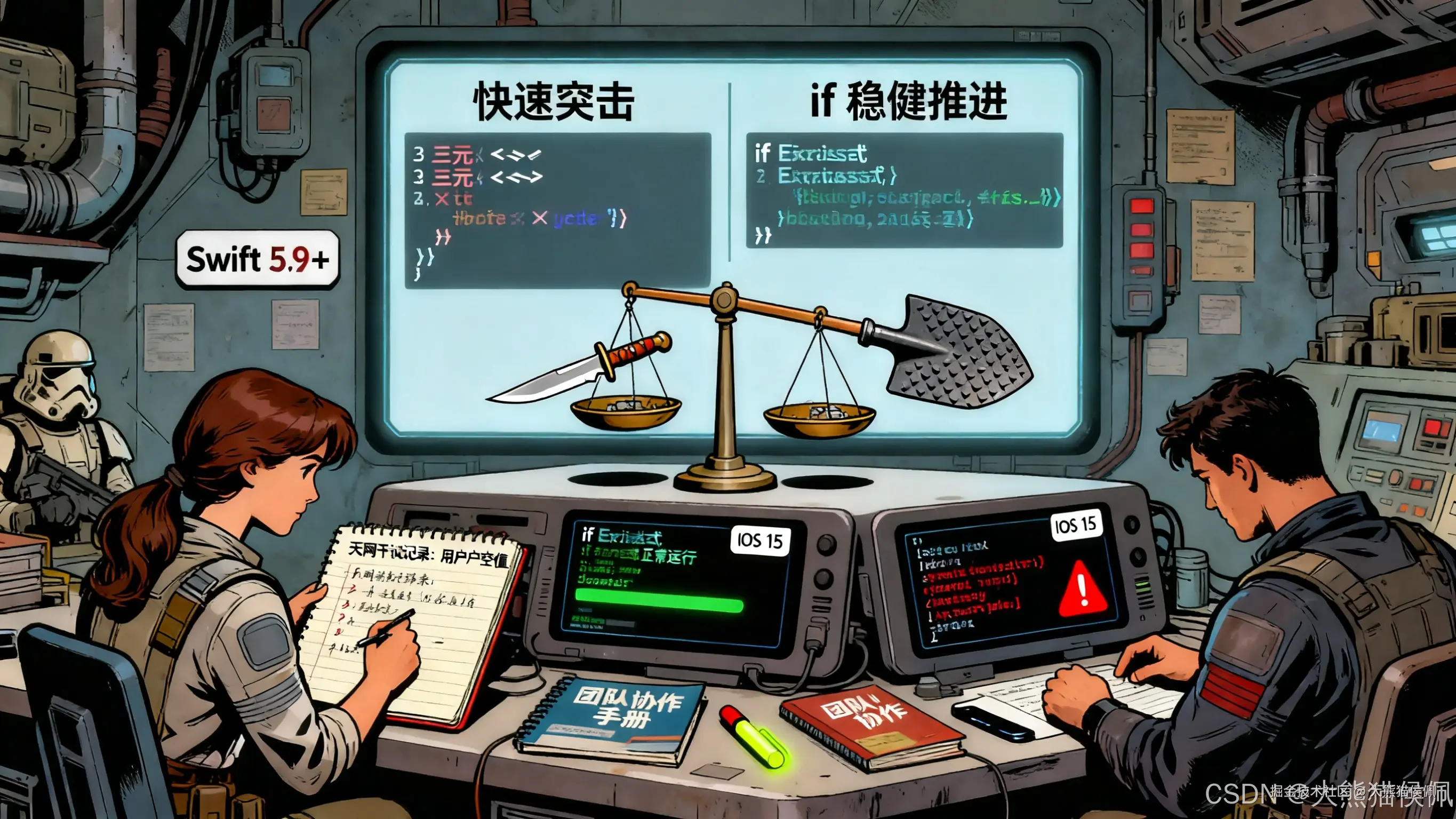 Swift 版本限制 :if 表达式是Swift 5.9+ 才有的特性,要是你的项目还在兼容老版本(比如反抗军的某些旧设备还跑着 iOS 15),那就只能乖乖用三元喽。