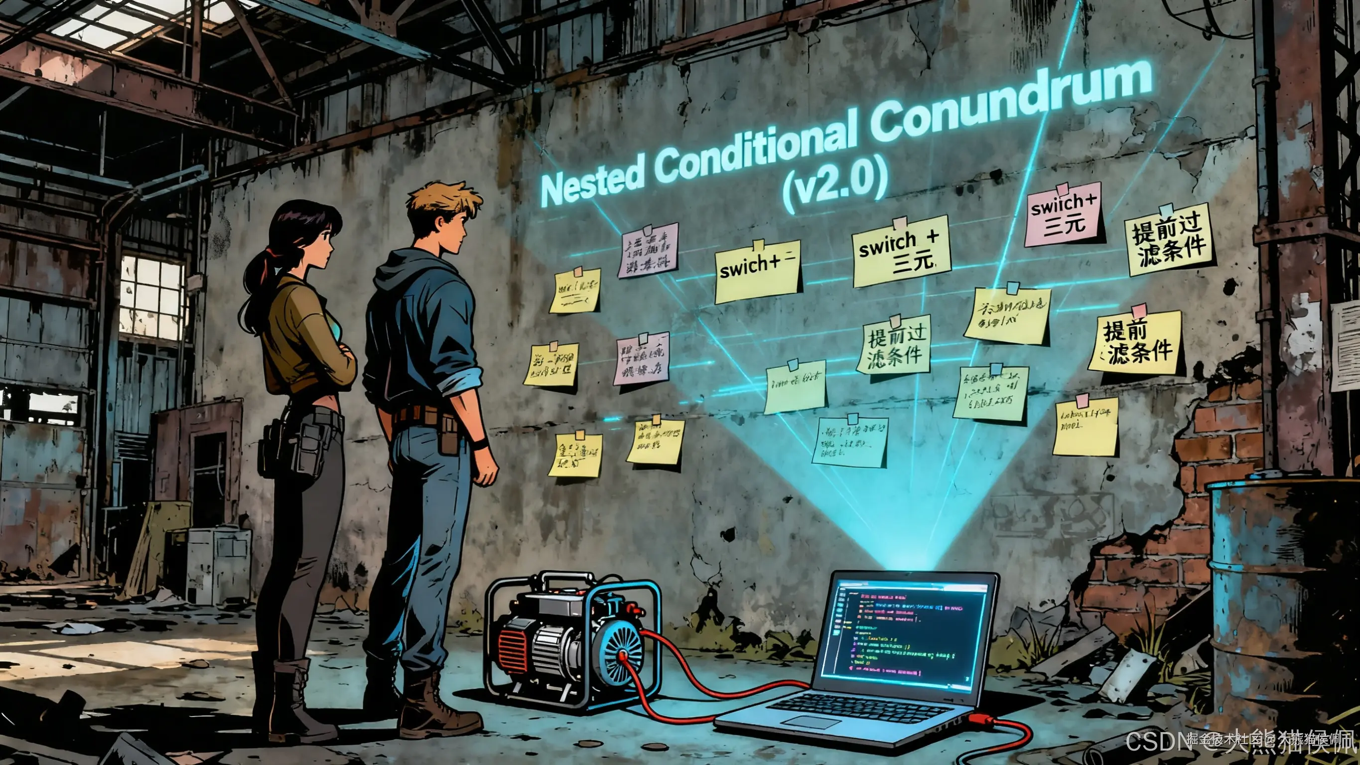 结果凯尔看一眼就抱怨:"你这是给自己挖坑!天网都不用动手,你自己看三天后还能看懂这行代码不?嵌套三元就是'代码地雷',表面省事,实际一维护就炸!"