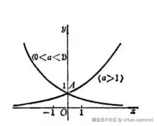 - 图像过点 <math xmlns="http://www.w3.org/1998/Math/MathML"> ( 0 , 1 ) (0,1) </math>(0,1)(因为 <math xmlns="http://www.w3.org/1998/Math/MathML"> a 0 = 1 a^0 = 1 </math>a0=1)。