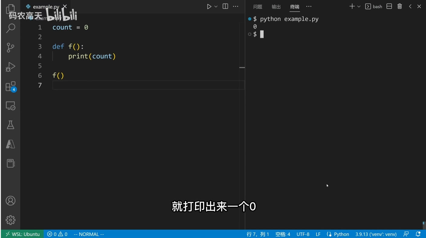 print(count) # 输出:0(外层 count 未被修改,内层修改的是局部变量)