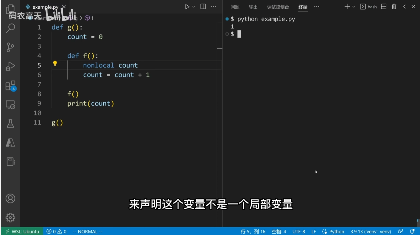 管嵌套 :需在闭包内层修改"外层函数的局部变量"时,必须用nonlocal