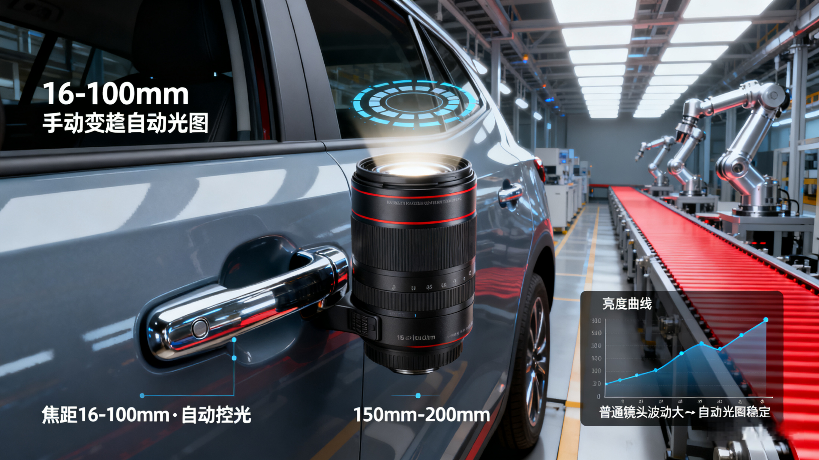 全自动线:选电动变焦自动光圈(全流程无人化,适配高速节奏);