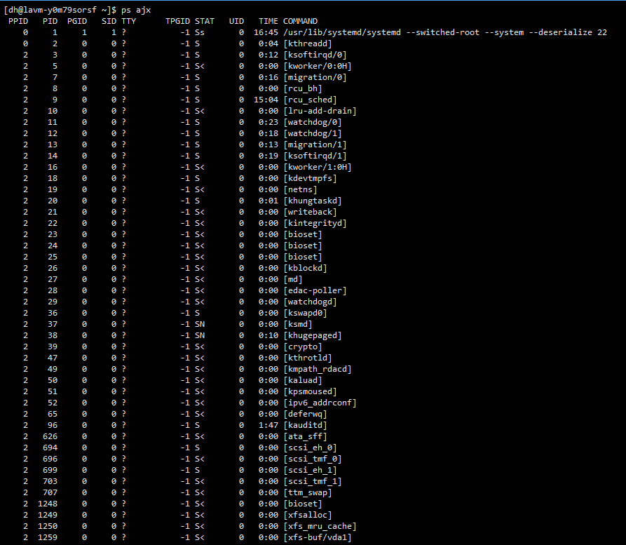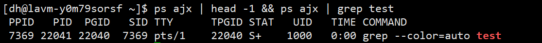 我们可以通过ps命令查看该进程的信息,即可发现通过ps命令得到的进程的PID和PPID与使用系统调用函数getpid和getppid所获取的值相同。