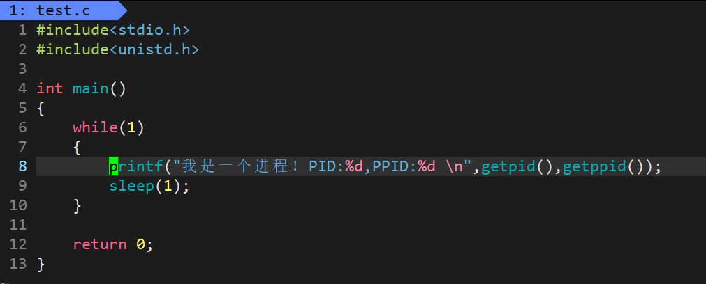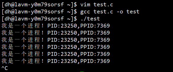 7 printf("我是一个进程,PID:%d,PPID:%d\n",getpid(),getppid());