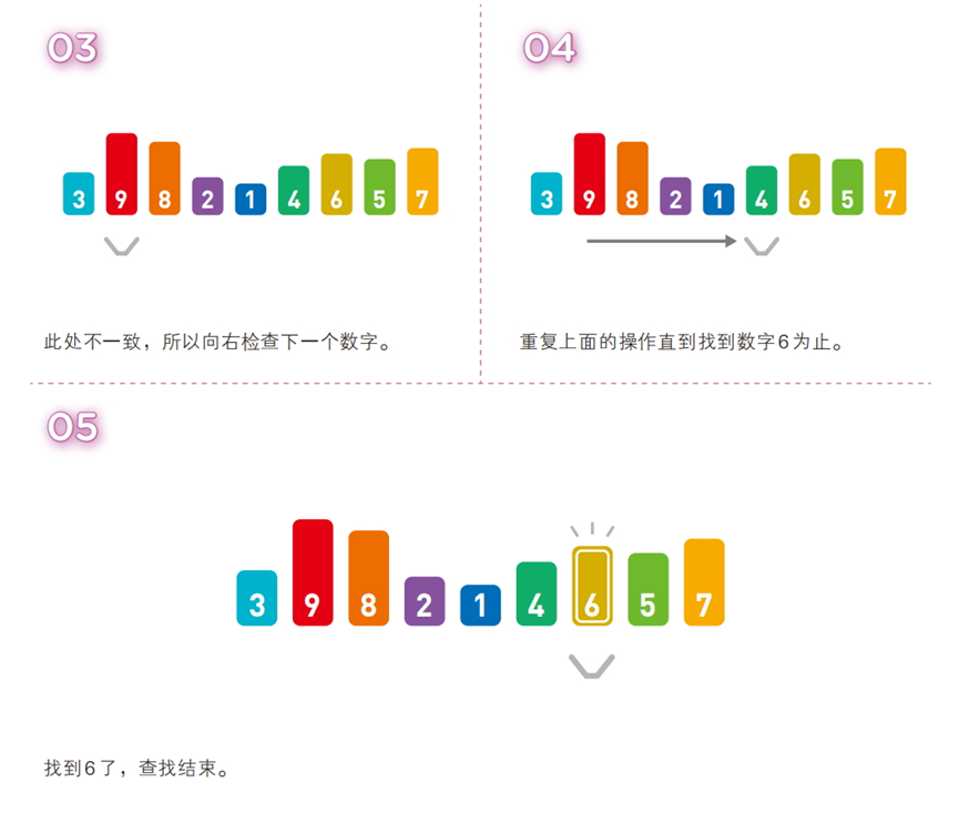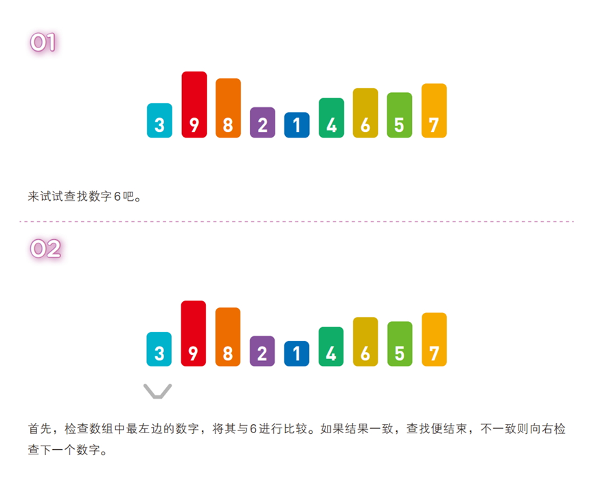 从数据序列的起始位置开始,逐个遍历元素,与目标值逐一比较,直到找到匹配元素或遍历结束。