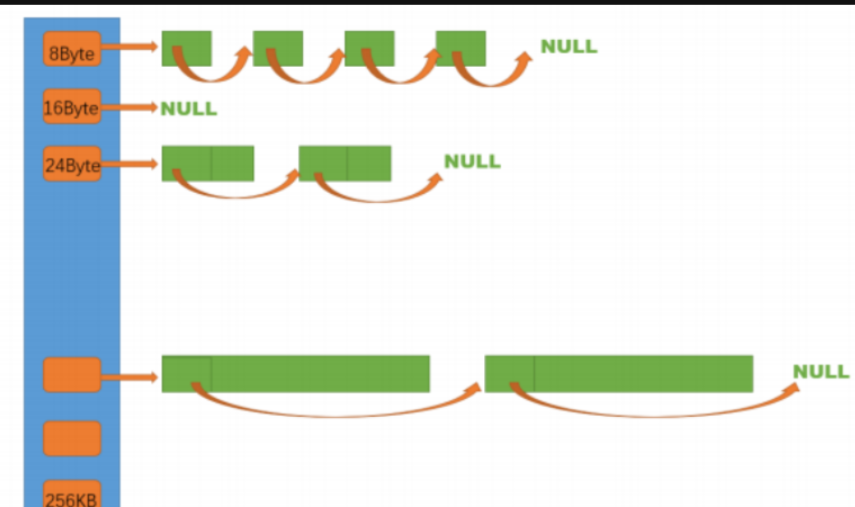 2.内存池管理需要有申请和释放,用户申请的空间用完需要释放,但是这里的释放不会还回去OS,而是存储起来,下一次申请可能可以用这些存储起来的,而且还回去是有要求的,申请多少就要free多少,不能只free一部分会报错的,大部分空间都空了,但是有一部分还在使用就free不了。就可以用一个链表管理这些被还回来的空间,把每个还回来的空间的头部分存储一个地址,这个地址指向下一个还回来的空间,就可以串起来这些资源。