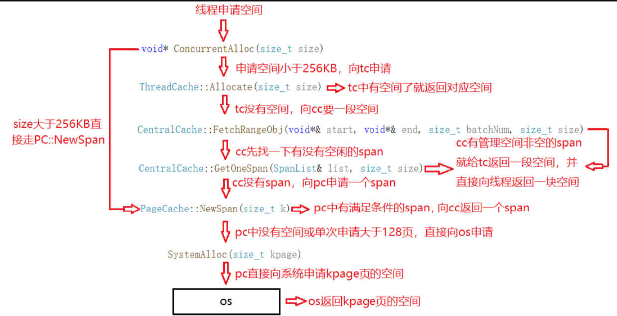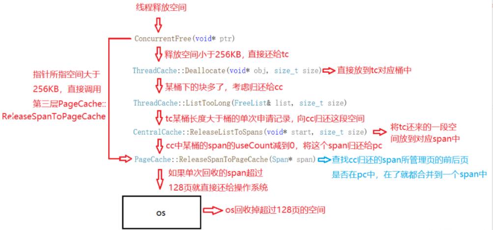 cc也会收回给tc的空间,当tc申请了很多空间,并且这些空间释放(不是delete的),则tc的freelist就会过长,所以cc就要收回多余空间。当tc向cc申请空间时,cc也不足于给tc就会向上申请,也就是pagecache.