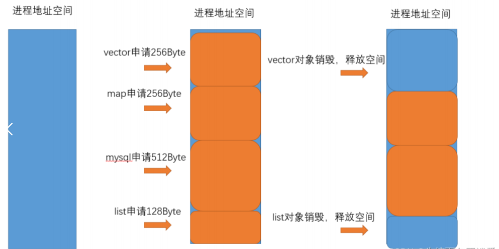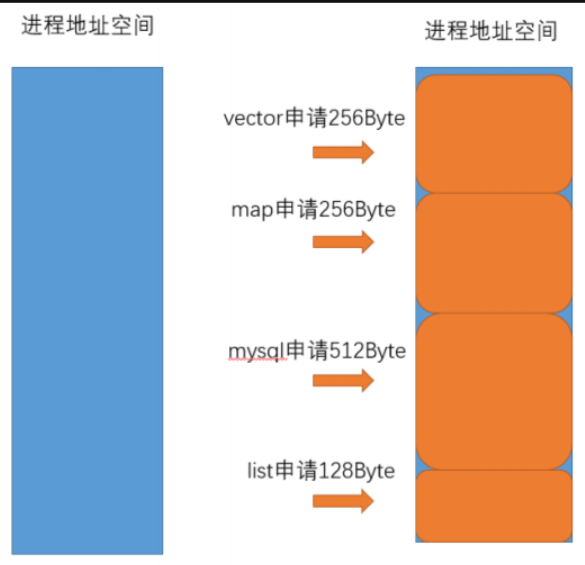 上面申请空间是连续申请一片空间,就会有一种情况,有些空间申请完后释放,新的申请来了,总剩余空间是足够的,但是不是连续,就会申请失败,这就是外部碎片。而这个项目有操作处理这个问题。