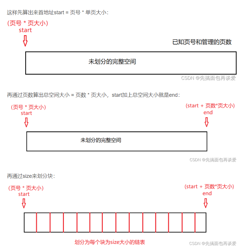之间的代码。这里<<13是要得到页的数量,这里就是16页大小,objSize的大小之所以这样计算是因为T可能会小于一个指针大小,要保证能存下一个指针大小,申请了objsize大小,memory地址就需要后移objsize,剩余字节数也需要减少。这里有个问题就是不同位下的指针大小不同,32位是4个字节,64位是8个字节,可以用一个二级指针在对其解引用,就可以得到一个指针大小了,