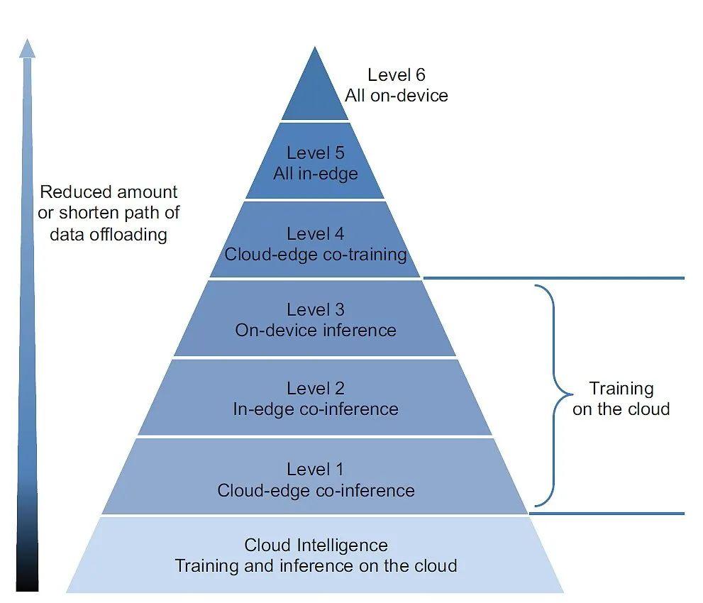 一般没有"最佳级别",因为边缘智能的最佳设置取决于应用程序,并且是通过联合考虑延迟、隐私、能效、资源成本和带宽成本等多个标准来确定的。