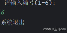 用户输入6时,打印"系统退出,再见!",用`break`终止程序。